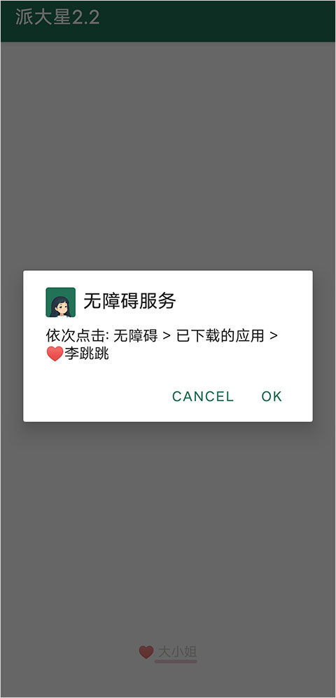 1、进到李跳跳正式版软件内,点击开关按钮,点击之后会弹出一个窗口,按照提示依次进行点击。
