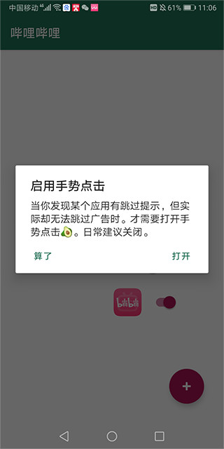 例如用户启用手势点击后就可以在用户看视频时自动点击视频中的【跳过】按钮