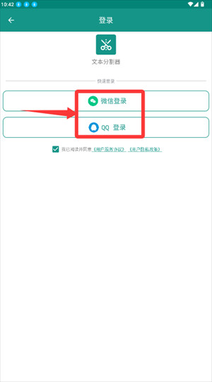 1、在文本分割器登录页勾选协议,选微信或QQ登录。