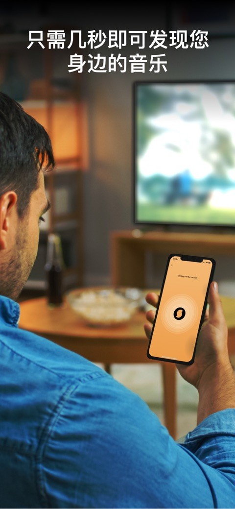 • 点击橙色按钮可立即辨识歌曲并看到实时歌词,还能播放视频、分享、在线播放或购买。
