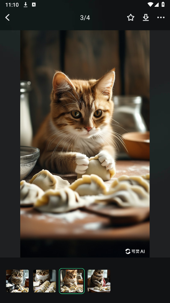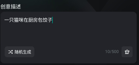 1、在可灵AI手机版的AI图片创作描述框中输入提示词,例如:“一只猫咪在厨房包饺子”。