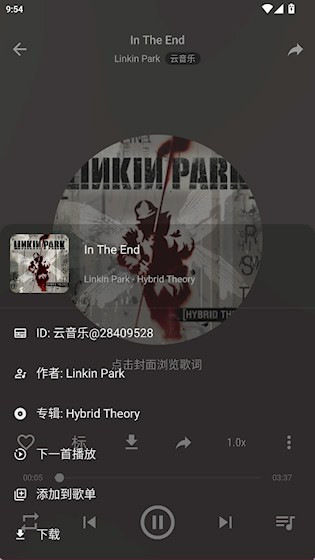 3、进入歌曲详情页面可以选择下载、收藏歌曲,还可以将其添加到歌单,整体操作方式与大多数音乐播放器差距不大。