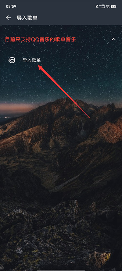 1、首先,打开速速悦音乐2026APP,进入个人页面,点击“导入”按钮;