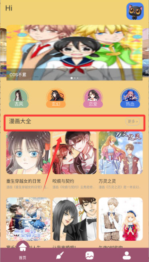 2、选择漫画按钮进入查看更多书本。