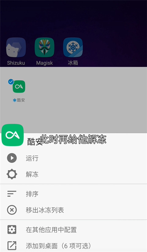 - 直接解冻并运行 App- 双击快捷方式冻结