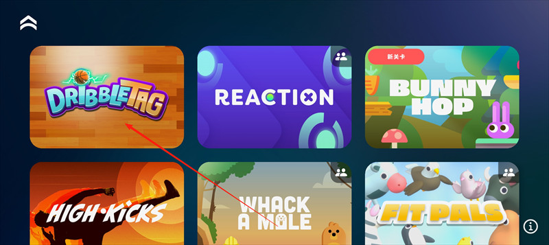 1、打开活力街体感游戏,点击左上角的箭头图标