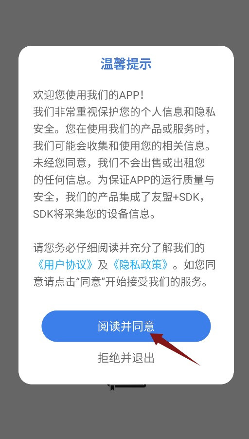1、首次启动明吉考试助手应用需点击确认温馨提示,同意后方可进入学习主界面。