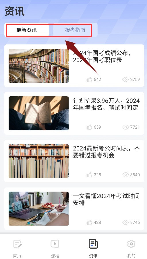 4、资讯界面展示最新考试动态与报考指南等实用信息。