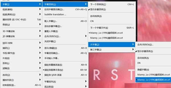 首先将下载的字幕重命名,例如视频文件为:Manny & Lo? (1996)曼妮姐妹。avi,将字幕命名为Manny & Lo? (1996)曼妮姐妹。cn.srt和Manny & Lo? (1996)曼妮姐妹。en.srt。