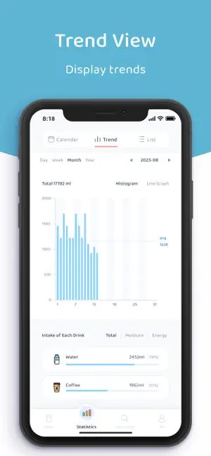 观察每日喝水走势不担心,我们提供日历和趋势图两种呈现方式,帮您最有效的制定喝水计划和展示您的喝水记录。