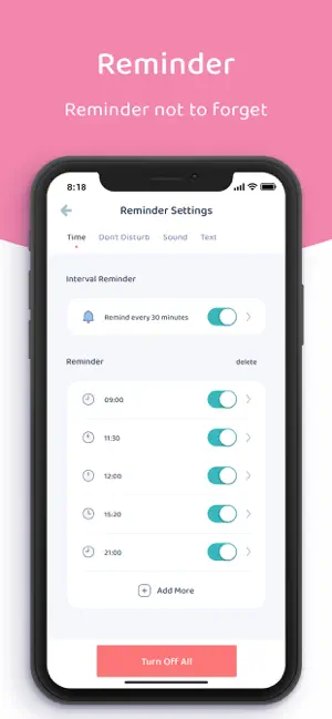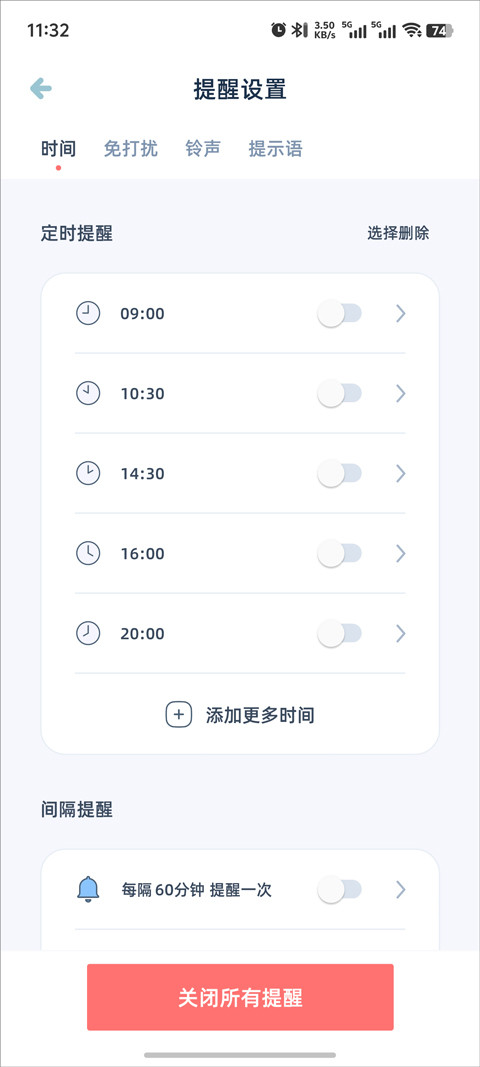 2、用户可根据自己的需求来自定义设置时间提醒,当然你也可以关闭所有提醒。