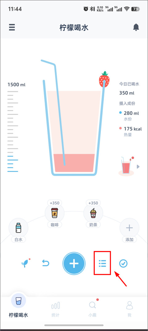 1、在柠檬喝水喝水数量设定,即时添加需要喝水的数量目标,立即设定。