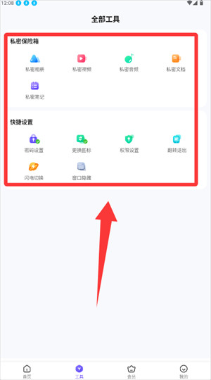 3、进入工具页面,可根据需要访问各类隐私功能。