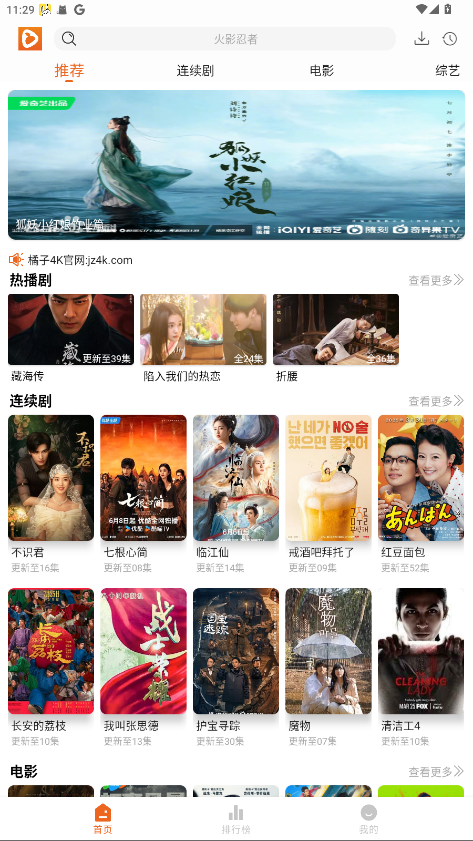 1、进入到橘子视频4K首页以后就可以顺利使用此软件进行查看。
