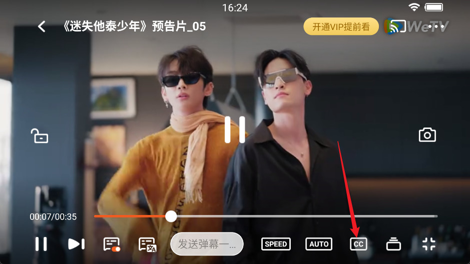 1、在视频播放界面点击下方的CC。