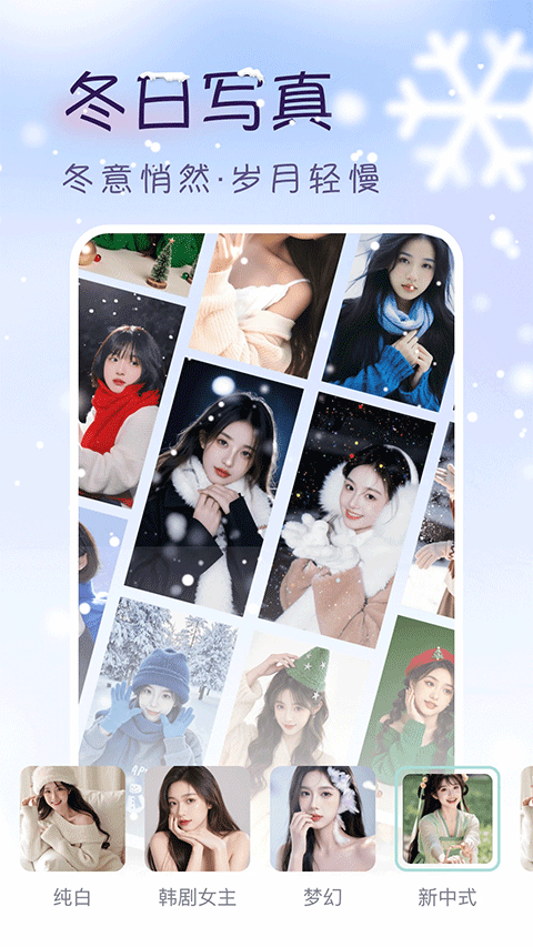 模板按写真、头像集、节日主题等维度整理,用户想做社交头像或特定风格照时,检索路径更短。