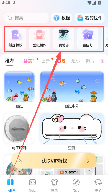 1、进入iscreen桌面小组件软件首页小组件页面,点击上方灵动岛功能。