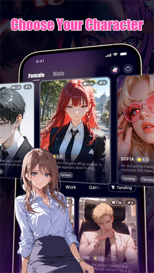 1、创新融合玩法吸引力强: 将AI聊天、角色扮演、剧情游戏与卡牌收集创新结合,满足用户对多样化互动形式的期待。