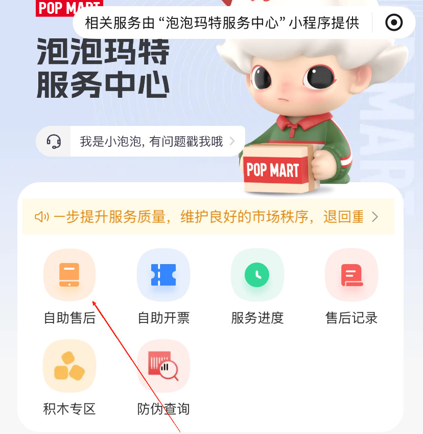3、提交后,工作人员会在48小时内审核,请注意查收短信通知或查看【泡泡玛特服务中心】小程序售后单进度