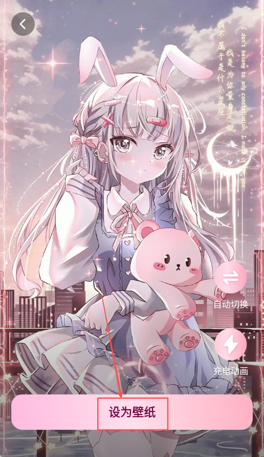 3、点击设为壁纸将其应用为桌面壁纸操作,点击设为壁纸按钮将该壁纸应用到手机桌面背景显示。