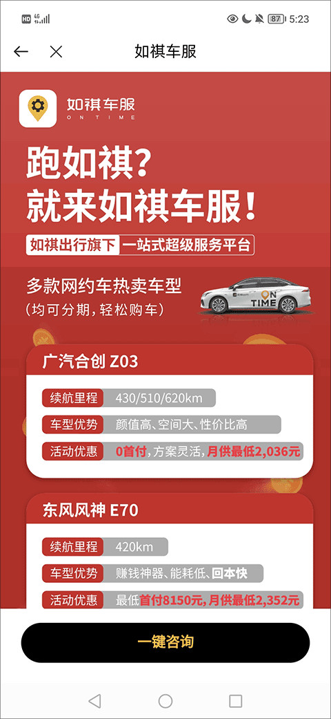 4、在如祺客服界面找到并点击“一键咨询”选项。