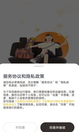 1、下载并打开如祺出行车主,点击同意并继续,完成注册和登录。