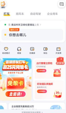 4、不管是专车、顺风车、还是自动驾驶,都有机会领取优惠券打车哦。