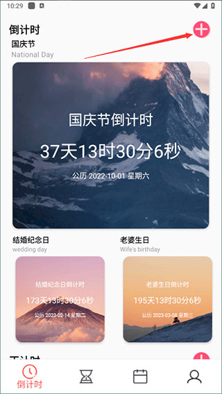 1、打开倒计时器app,点击右上角的【+】按钮。