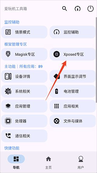 2、然后进入爱玩机工具箱手机版中点击【xposed专区】。