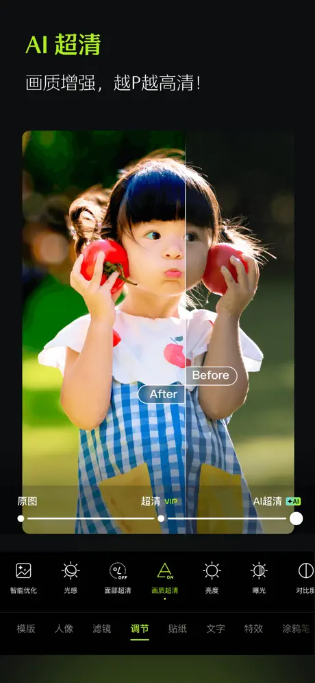 功能强大全面,无需切换,一站式满足全部修图需求。