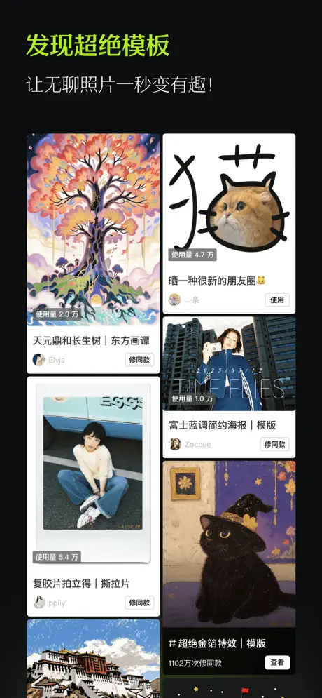 醒图模板种类齐全且都免费,套模板的话,选择醒图最佳 Hypic中也有模板也都免费,风格偏美式,相对于醒图来说,种类相对单一。