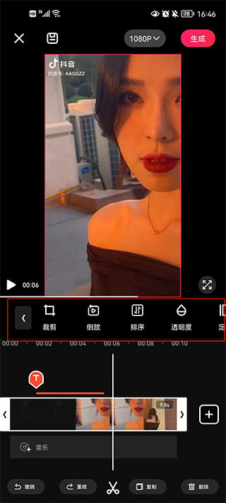 5、除了添加文字以外,还开放了很多功能供大家使用,比如倒放、排序等等之类。