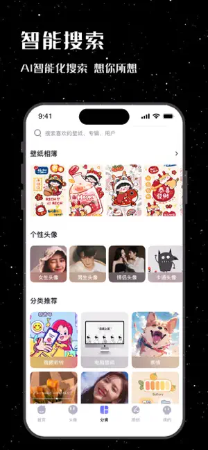 头像:提供最全分类,清晰明确,快速定位自己的爱好,让你的头像与众不同,个性十足。