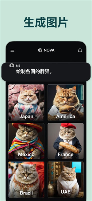 1、多模态能力集成,NovaAI覆盖文本、图像、语音全交互场景:在同一应用中即可完成问答、绘图、语音对话等多元化AI操作。