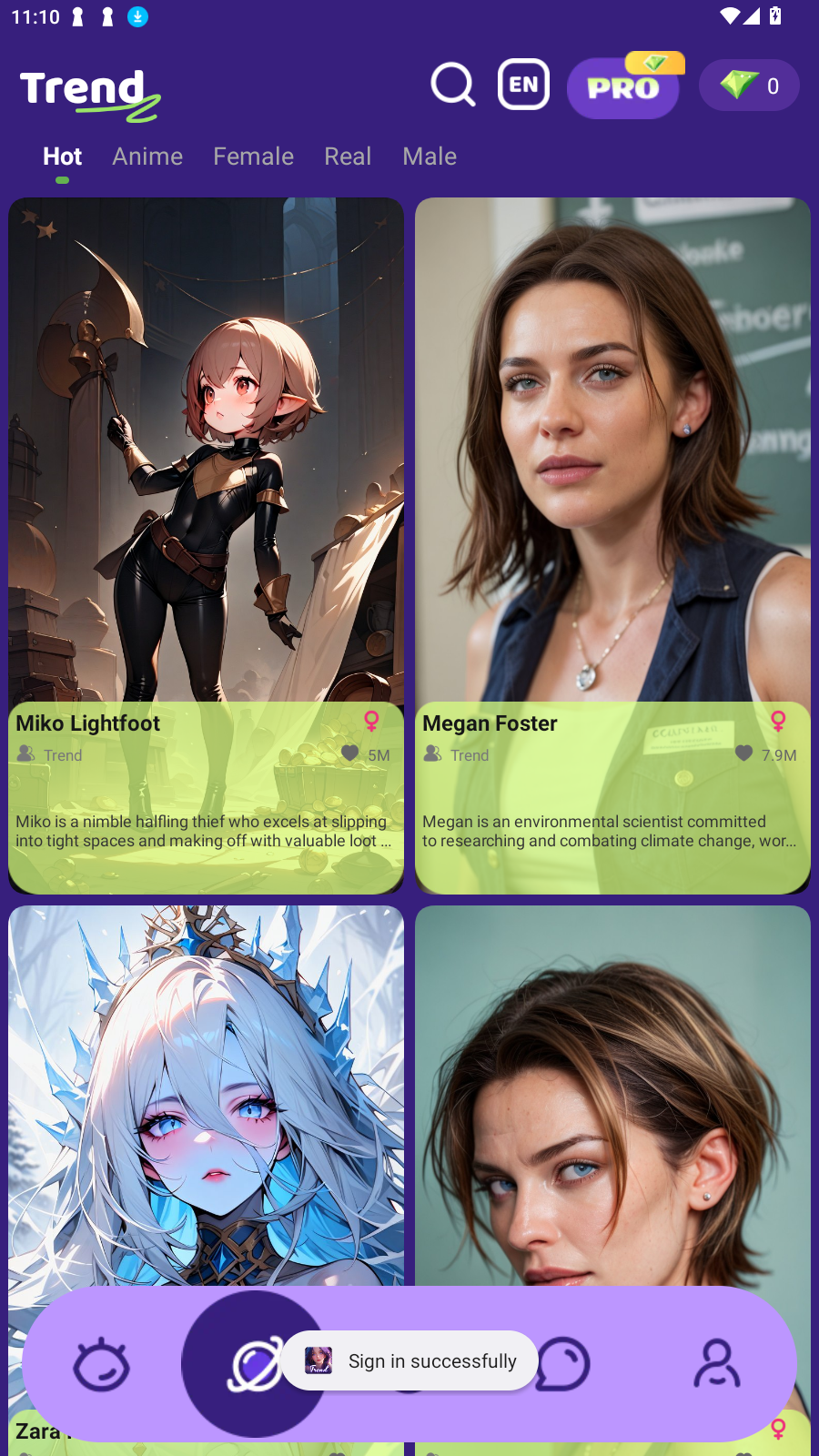 用户可按风格与性别等维度创建专属角色,并补充背景设定来固定对话人设,Trend AI在“自定义程度”上更容易满足不同偏好。