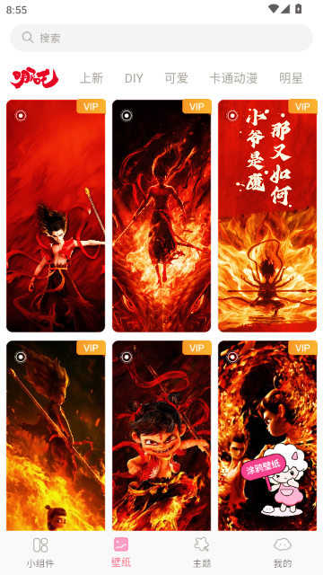 5.在壁纸页面浏览并选择心仪壁纸,如“哪吒”系列。