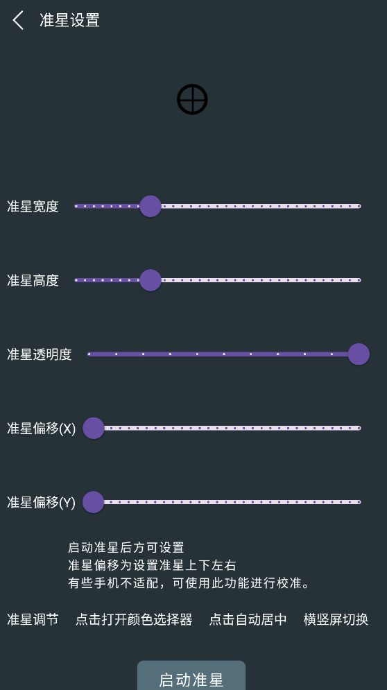 3、进入后分别设置准星宽度、高度、透明度等,点击"启动准星"。