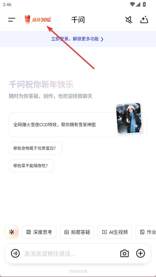 2、也可以在最新版千问智能助手app中点击上方进入