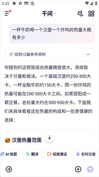 输入内容或者随手一拍热量识别
