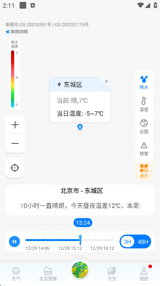 支持区域级精准天气查询,搭配降水、温度等图层看局部气象。