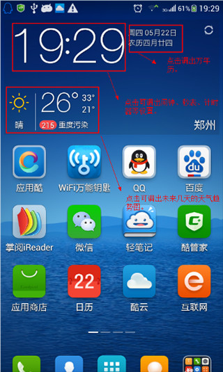 1、我们使用手机,总是想要一个有时间、日期、天气等多功能的桌面小部件,方便我们查看。最近用了最美天气手机版,发现用着不错。如图,我设置在主桌面上的是最美天气(5*2)4*2的部件。