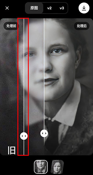 4、处理完成后来到下方界面后拖动中间的指针即可查看处理前后的差别。
