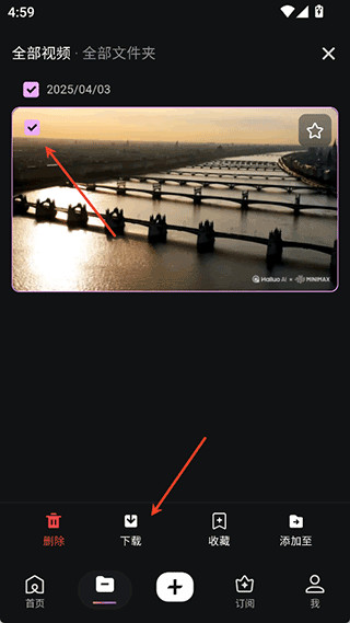 2、接着就会在底部出现下载按钮,用户在视频浏览界面左上角继续勾选下,然后再点击这个下载按钮。