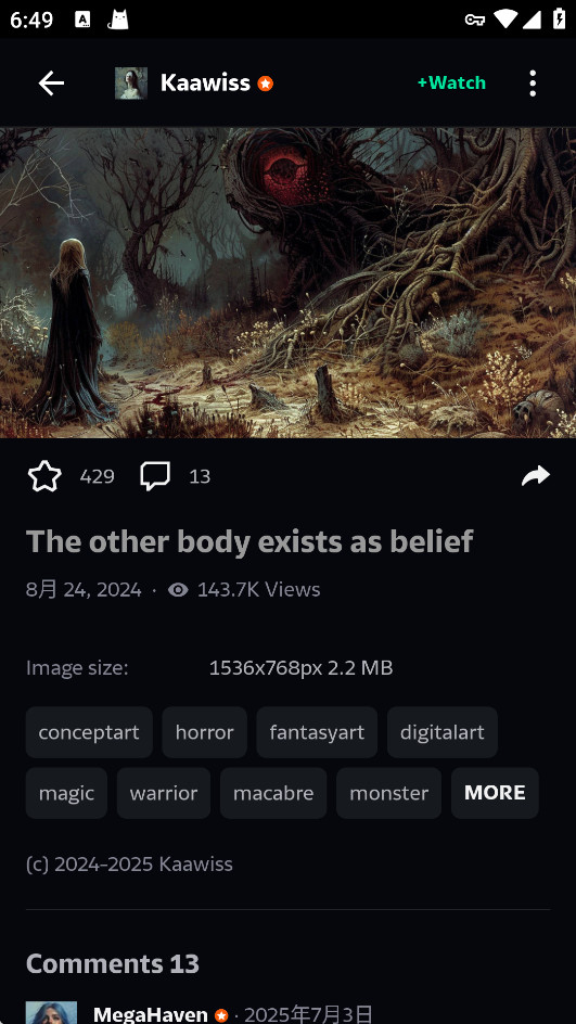 1、全球知名艺术社区:DeviantArt汇聚了超过1亿用户和6.5亿件作品,是全球最大的艺术创作社区平台。