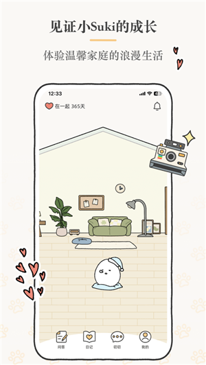 1、宠物互动培养:suki通过与虚拟宠物的互动,促进情侣之间的感情交流。
