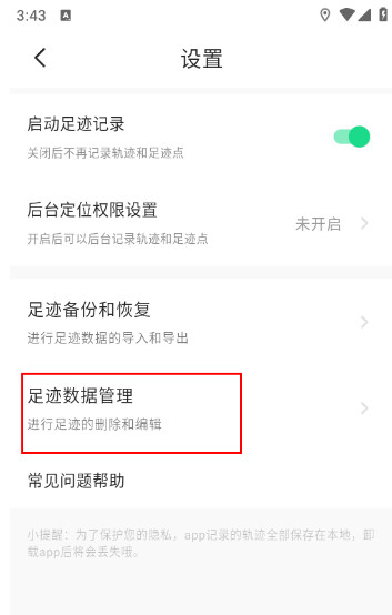 3、点击足迹数据管理,进行足迹数据的删除和编辑。