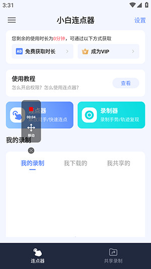 1、小白连点器手机版涵盖了单点/多点触摸、录制执行等核心功能,使您能够轻松地腾出双手,适应多场景需求。