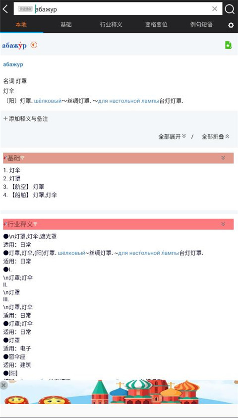 1、千亿词霸俄语词典支持俄汉汉俄双向基本释义、行业释义、例句、重音、变位变格信息查询翻译。