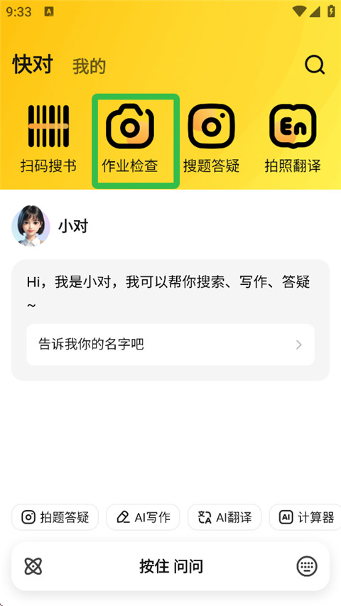 1、进入快对AI,点击【作业检查】。