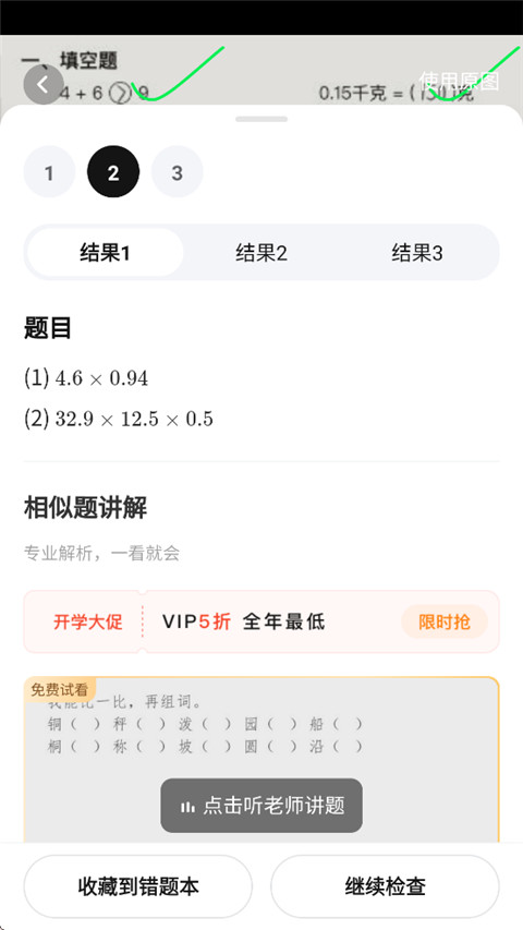 3、作业检查:支持家长一键检查孩子的作业,快速发现和纠正错误,提供有效的辅导和指导。